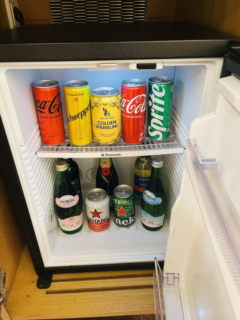 冷蔵庫の中を開けると、インドネシアのご当地ドリンク「Acaraki(アカラキ)」のゴールデンスパークリング(ターメリック&タマリンドソーダ)も!こういうローカルな飲み物も置いてあるのがバリらしくて好きでした。