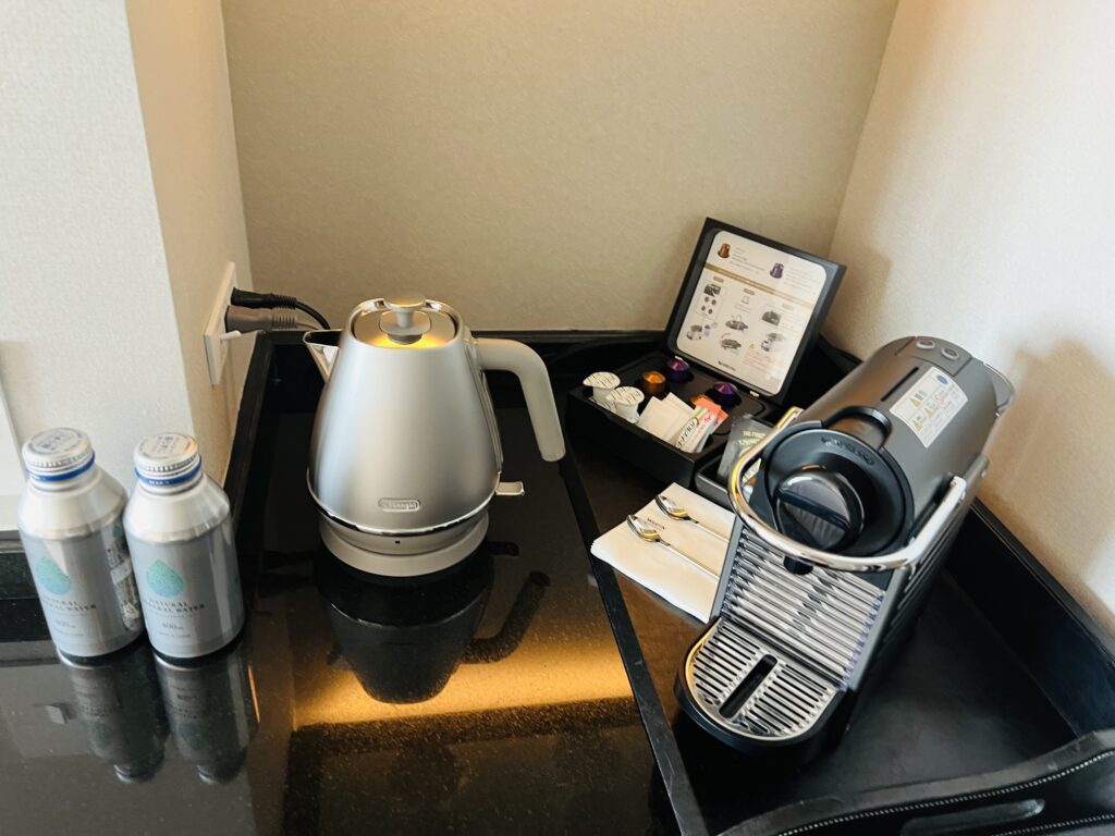 コーヒーメーカーはネスプレッソ、湯沸かしポットはデロンギでした。