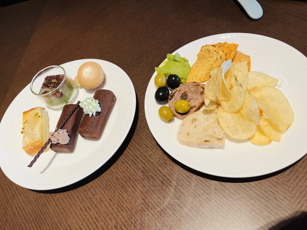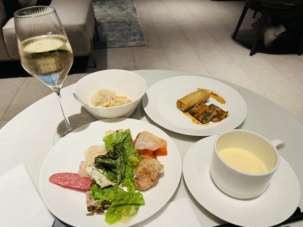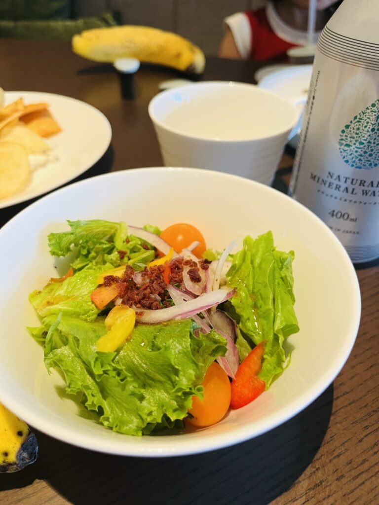 サラダやチーズ、ハムの他にも飲茶もあり、夕食の代わりとなるくらいボリュームがあり大満足の内容でした。