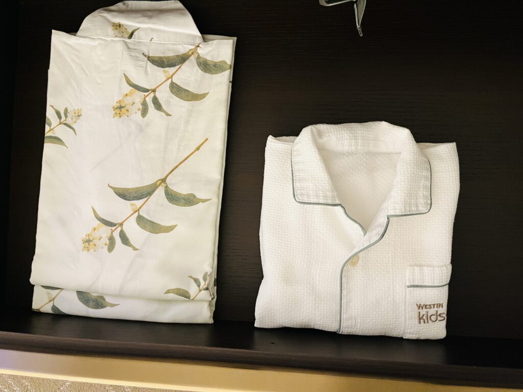 引き出しの中には浴衣と子供用のパジャマも。下の子のためにもうワンサイズ小さい館内着をリクエストしました。